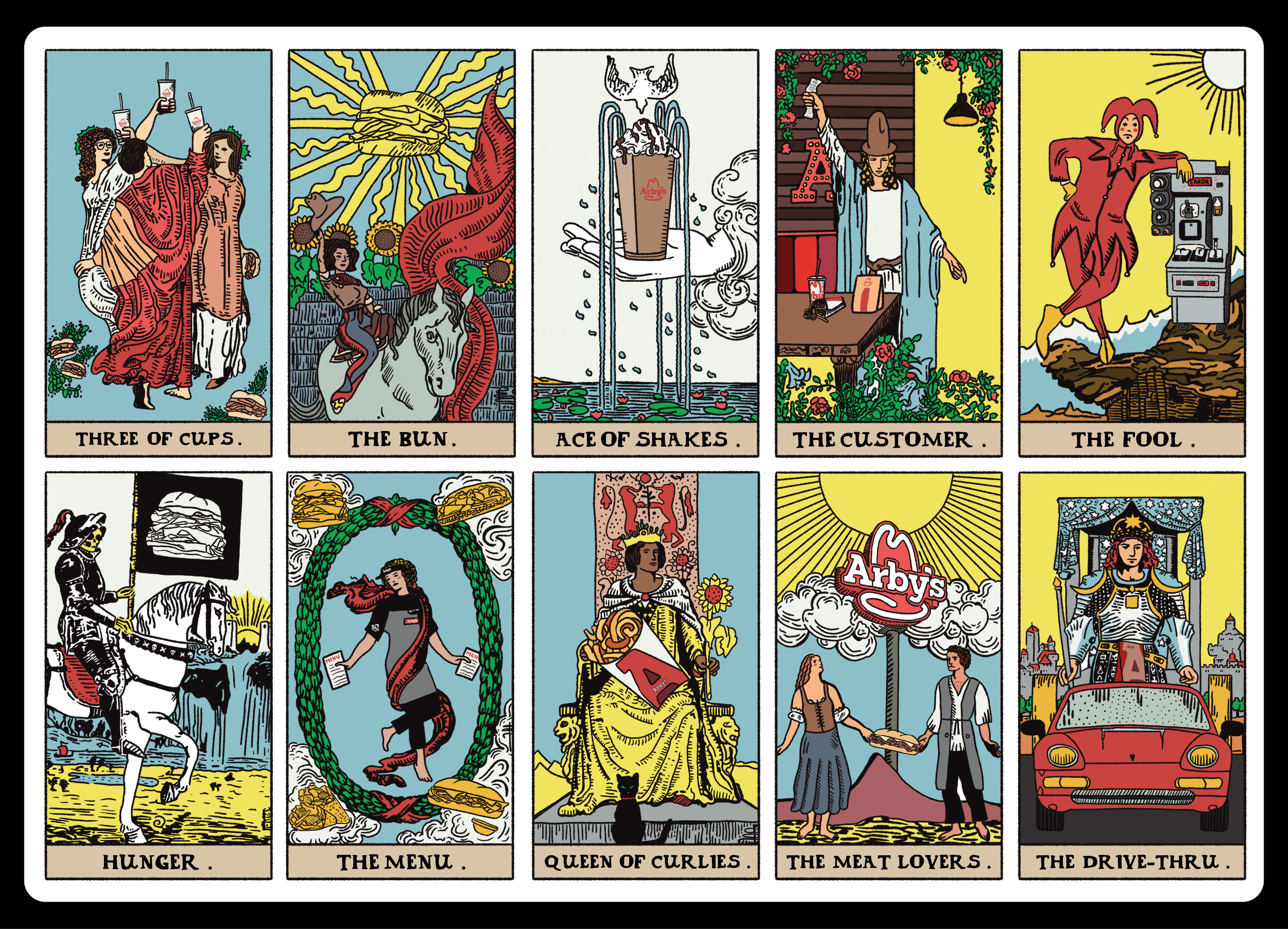 And lastly, here is some fun evergreen content that I’ve loved putting together. I’ve designed and illustrated custom Arby’s-themed tarot cards, learned to felt an Arby’s meal without any previous knowledge, participated in “Arbtober” by learning to draw anime, and much much more.